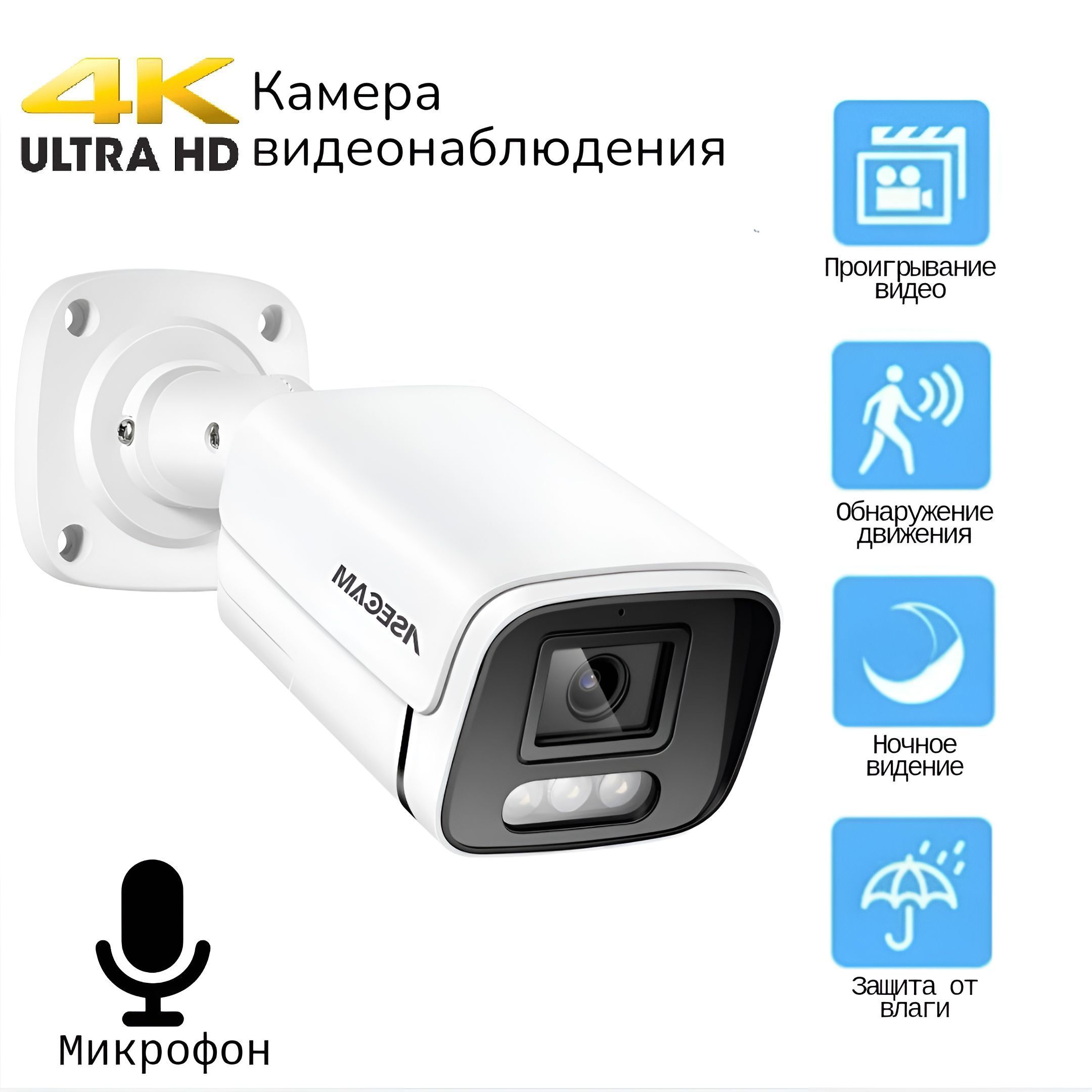 4K IP камера высокого разрешения со встроенным микрофоном.