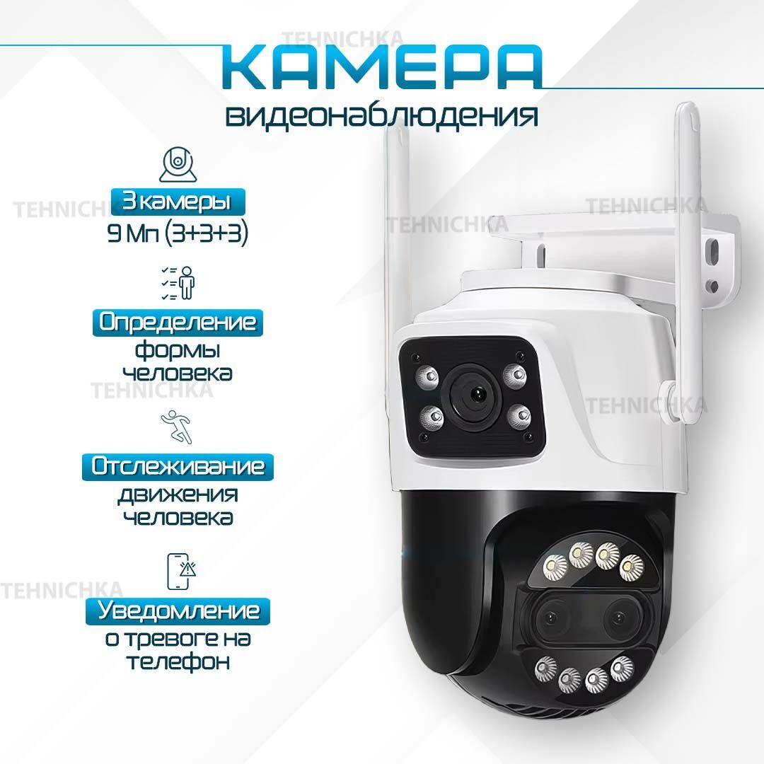 Версия 9 Мп камерой. Это означает, что одна не поворотная камера имеет разрешение 3 Мп и объектив 3,6м, а вторая камера поворотная 3 Мп. + 3Мп и имеет объектив 2,8 мм и 12 мм.