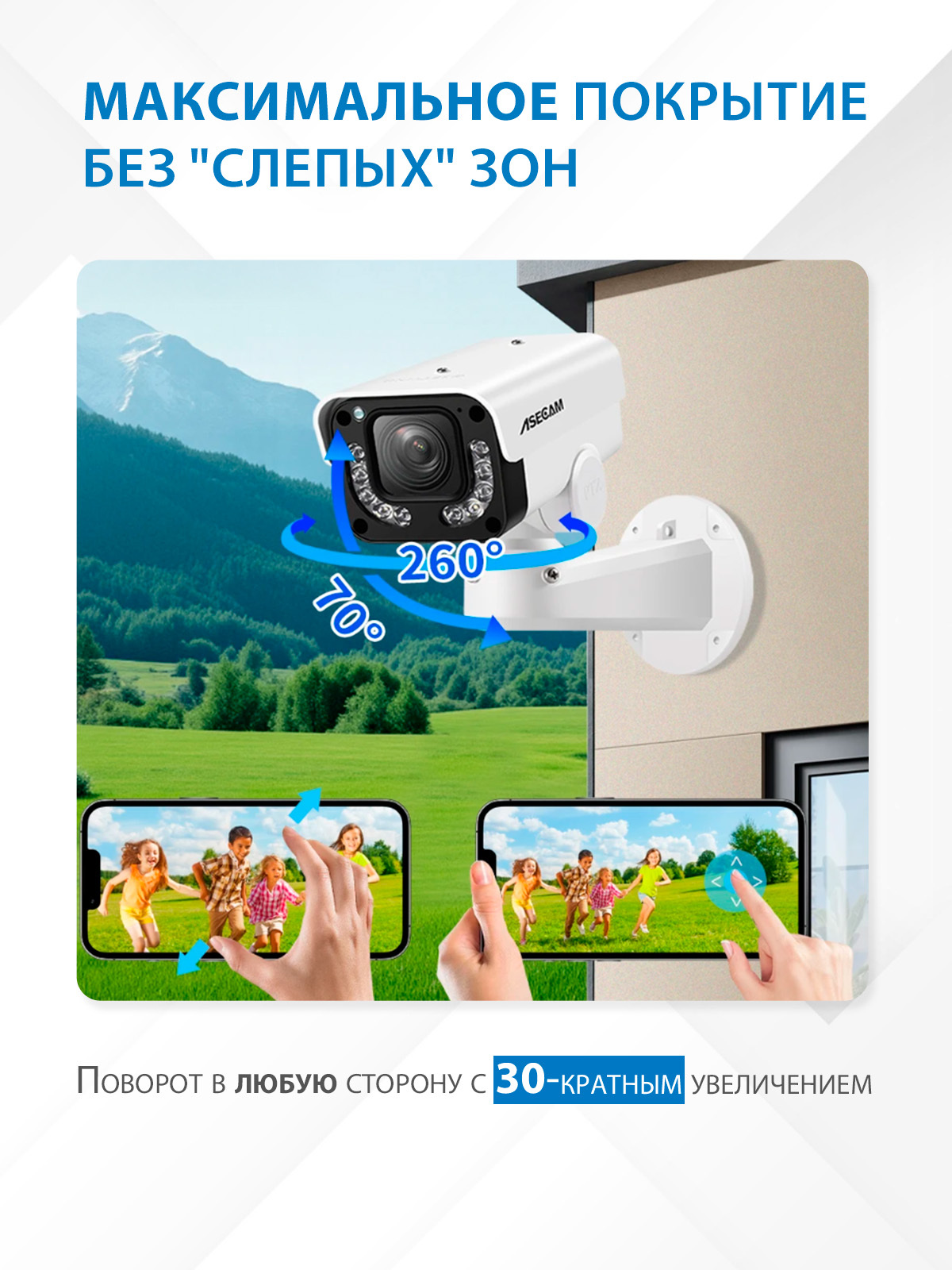 ASECAM Уличная IP видеокамера на поворотной платформе Sony IMX415 4K 8Mp PTZ PoE 30X увеличение и определение человека