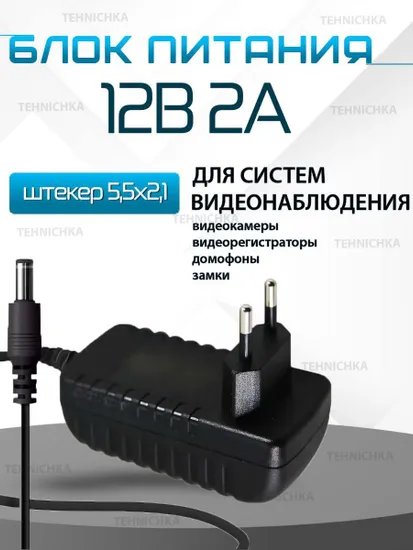 Блок питания 12V 2A (сетевой адаптер 12В 2А) - предназначен для питания оборудования напряжением 12В. Данный сетевой адаптер является универсальным, то есть подходит к очень большому количеству оборудования.