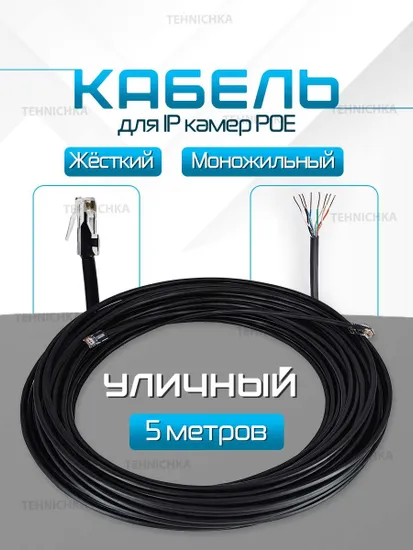 Кабель для камеры видеонаблюдения, LAN + POE, патч корд с POE 5 метров, U5