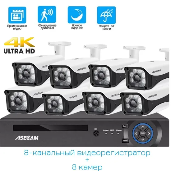 - 8 канальный IP видеорегистратор с POE, ASECAM 8CH 4K POE NVR, код товара 1127356315