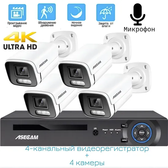 - 4 канальный IP видеорегистратор с POE, ASECAM 8CH 4K POE NVR, код товара 1127353914